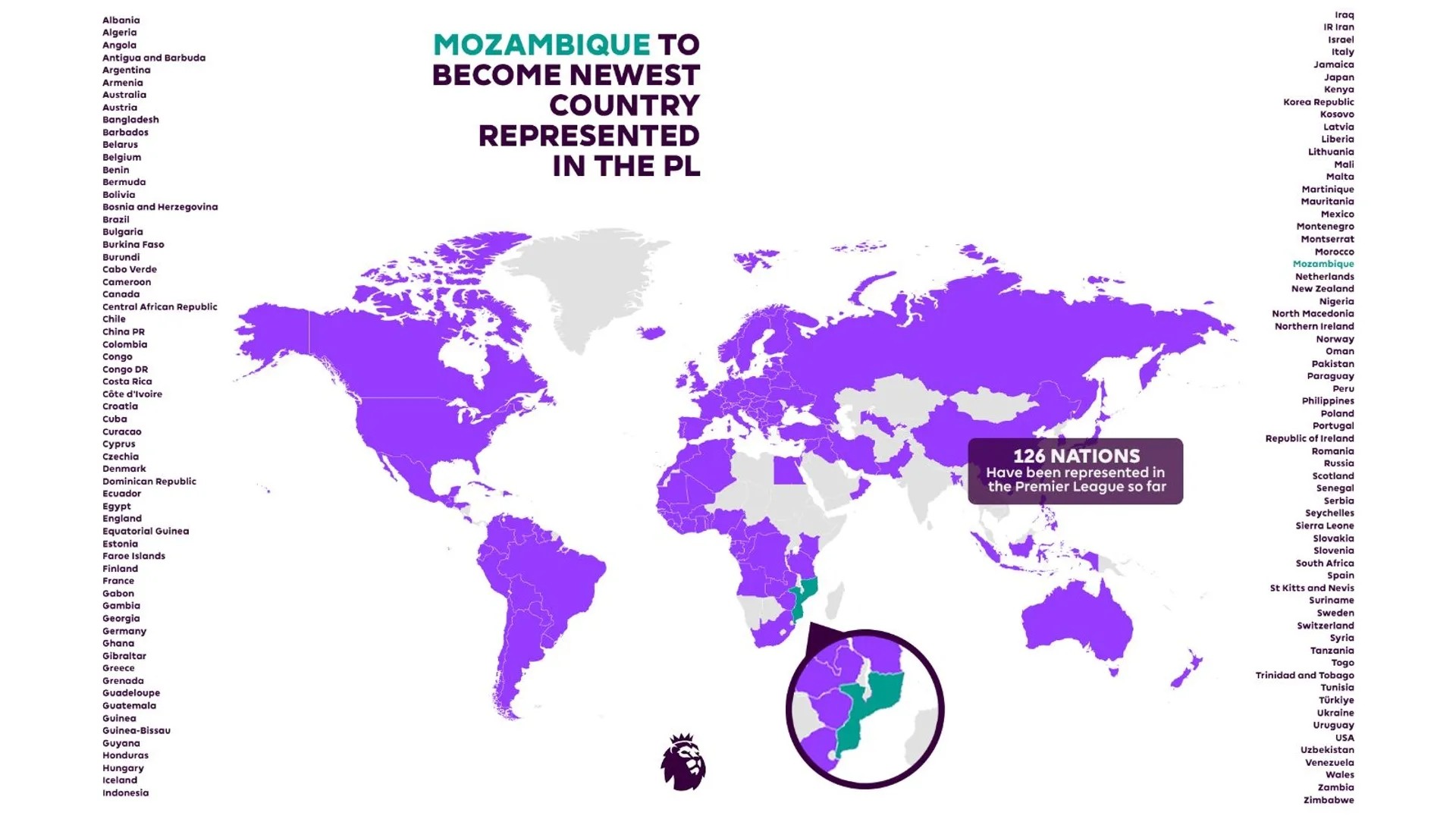 北京时间7月12日云谷策略,桑德兰官宣签下莫桑比克左后卫雷尼尔多,使得莫桑比克成为第127个拥有英超球员的国家/地区。